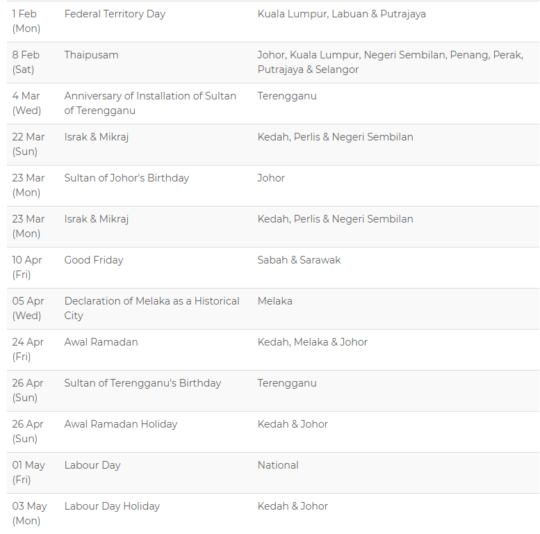 Related : 10 May Public Holiday Malaysia - Be a smart traveller and plan your holidays wisely..