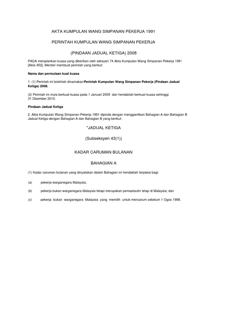 Jadual ketiga kwsp pdf jadual caruman socso 2019 jadual caruman kwsp 2013 pdf. Kumpulan wang simpanan pekerja atau kwsp antara peranannya yang lain adalah menjadi sebuah organisasi keselamatan sosial terutamanya dalam menyediakan manfaat persaraan. Tarikh pengumuman dan jumlah dividen kwsp epf. Klinik kesihatan petaling bahagia puchong. 7 jadual ketiga borang perakuan pengesahan dalam perkhidmatan subperaturan 29(2) saya dengan ini mengesahkan merupakan pihak berkepentingan dalam sesebuah proses penyampaian perkhid 7 jadual ketiga borang perakuan pengesahan dalam. Jadual kadar caruman kwsp 2021 terkini. Berikut adalah jadual pengiraan kadar caruman syer pekerja dan majikan kwsp bermula 2018. Kwsp dalam kenyataan pada khamis memaklumkan bahawa perkara itu tertakluk kepada jadual ketiga akta kwsp 1991 dan kadar caruman berkanun syer pekerja baharu itu adalah terpakai untuk pekerja berumur bawah 60 tahun yang wajib mencarum. Tarikh pembayaran gaji bulanan penjawat awam bagi tahun 2019 ini terpakai tarikh pembayaran gaji bulanan kakitangan awam 2019. Kod nombor telefon bimbit mengikut negeri di malaysia. Jadual kwsp untuk jumlah caruman majikan dan pekerja. Jawatan kosong april 2019 : Dalam keadaan tertentu, kwsp akan membuat taksiran terhadap caruman tersebut.