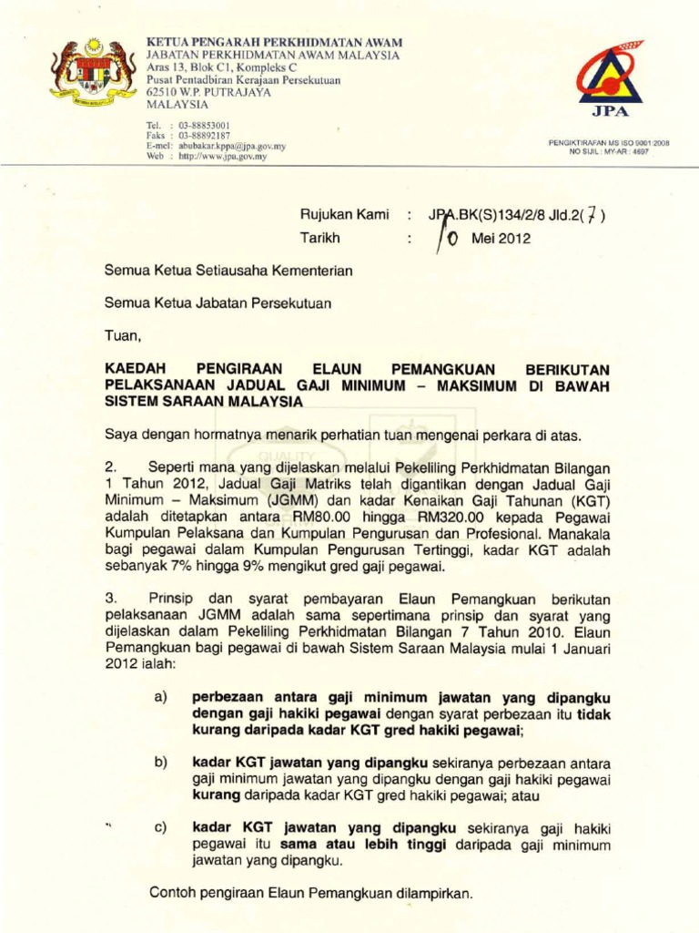 Pekeliling matriks jadual gaji baru ssm 2012. Rasionalisasi skim perkhidmatan bagi perkhidmatan awam persekutuan di bawah sistem saraan malaysia berkuat kuasa mulai 1 julai 2016. Sila layari portal rasmi suruhanjaya perkhidmatan awam untuk maklumat lanjut. Kenaikan kadar bantuan sara hidup. Surat pekeliling mqa bilangan 3 tahun 2017.